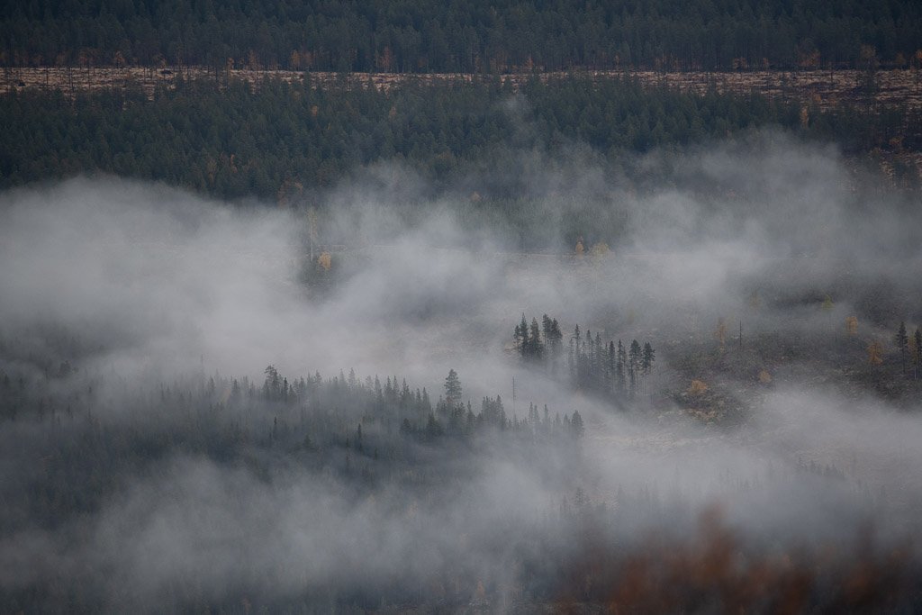 Jag har redan nämnt ”dimma” flera gånger och har ”magiska” i titeln till texten. Orsaken är att jag tycker det behövs stämning som en central ingrediens i skogsbilder. Stämningen är en viktig del av motivet. Förutom dimma skapar regn, snö eller som vanligt ett bra ljus också stämning. Tänk en bild från en tallskog tagen mitt på dagen i hårt ljus. Troligen ingen vidare bild eftersom det saknas stämning och en plats för ögat att stanna upp. Samma plats men i dimma eller dis, kanske med en sten, fallen trädstam eller stubbe i förgrunden. Det blir en helt annan bild. Jag brukar säga att det som normalt kallas dåligt väder är bra fotoväder. Tvärtom, en solig dag med blå himmel är dåligt fotoväder. Åtminstone för de bilder jag vill skapa.